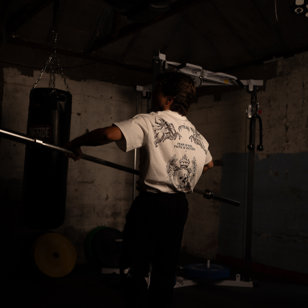 This shirt is legit. Super high-quality, thick but still breathable—perfect for workouts. The sword graphic is clean and gets compliments every time. Feels like I’m putting on armor before I lift. Love it.